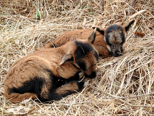 Unsere lebenden Rasenmäher auf der Wiese am Weingarten haben unerwartet früh Nachwuchs bekommen. Nun sind sie da, 2 kleine süße Wesen haben das Licht der Welt erblickt und Mutter und Kinder sind wohl auf. Die Eltern freuen sich und die Familie ist glücklich.